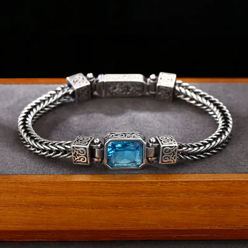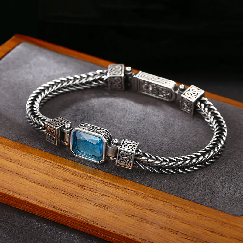 Silver Bracelets Braided Link Chain Vintage Style 204