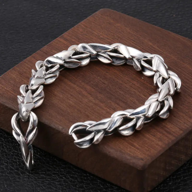 Silver Bracelets Foxtail Braided Link Chain Scroll Vintage Style 200