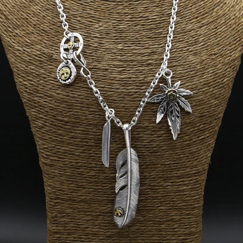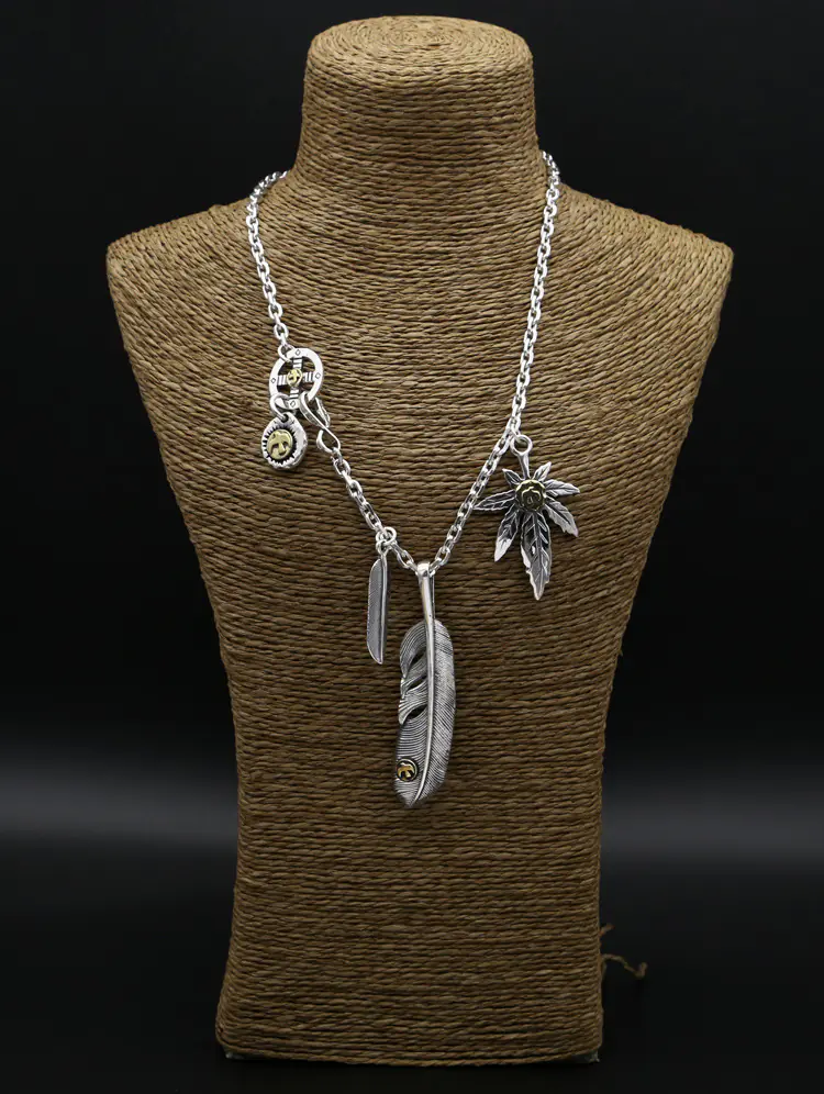 Silver Pendant Necklace Feather Leaf Vintage Style 280