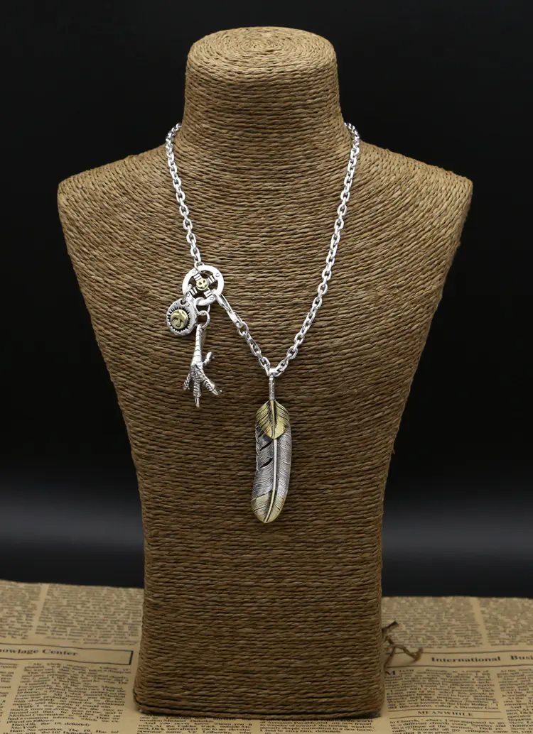 Silver Pendant Necklace Feather Talon Vintage Style 282