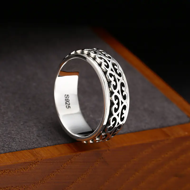 Silver Band Rings Scroll Textures Vintage Style 155