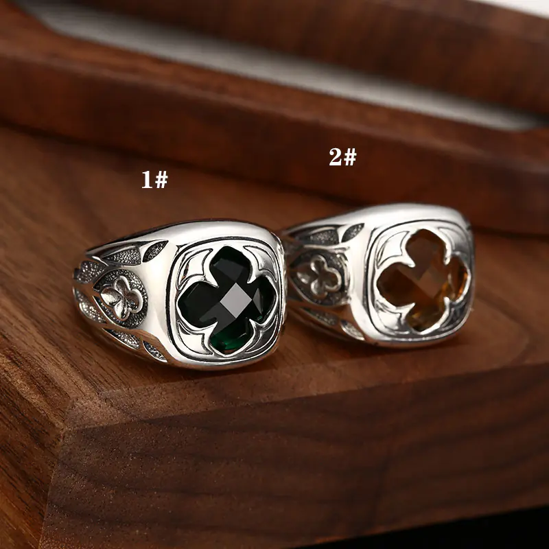 Silver Adjustable Rings Facet Square Stones Vintage Style 156