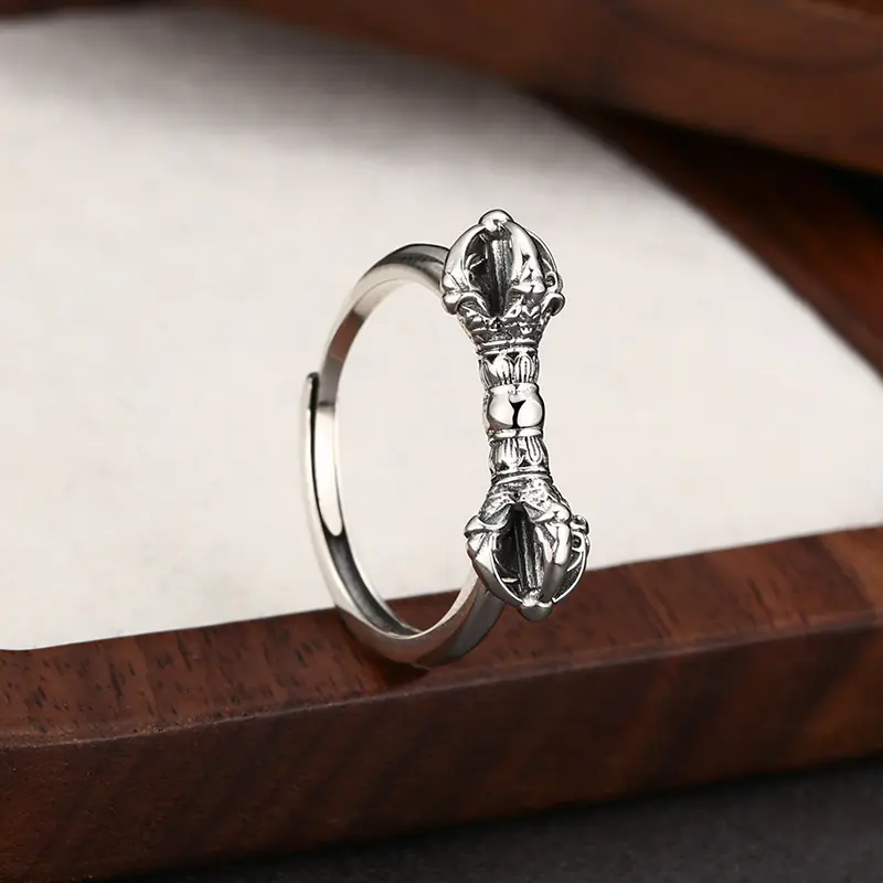 Silver Adjustable Rings Black Stones Vintage Style 148
