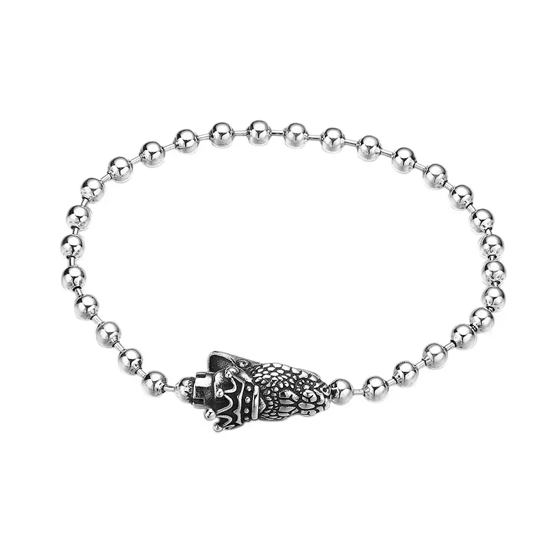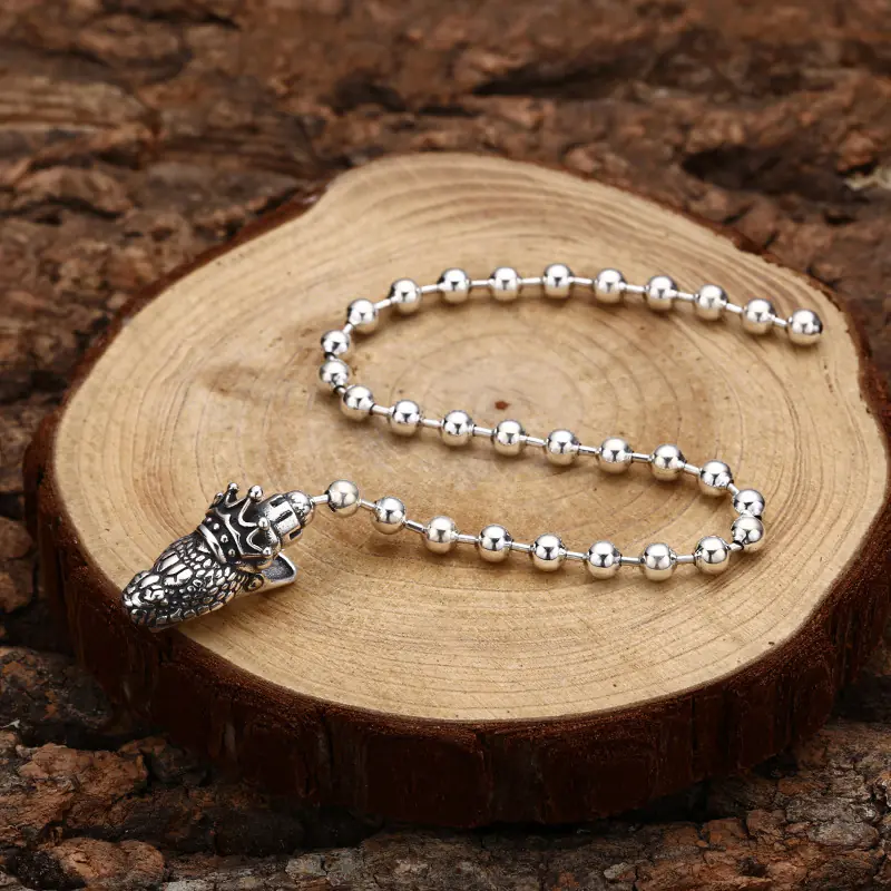 Antique Silver Bracelets Snake Head Ball Chain Bracelet Vintage Style 175
