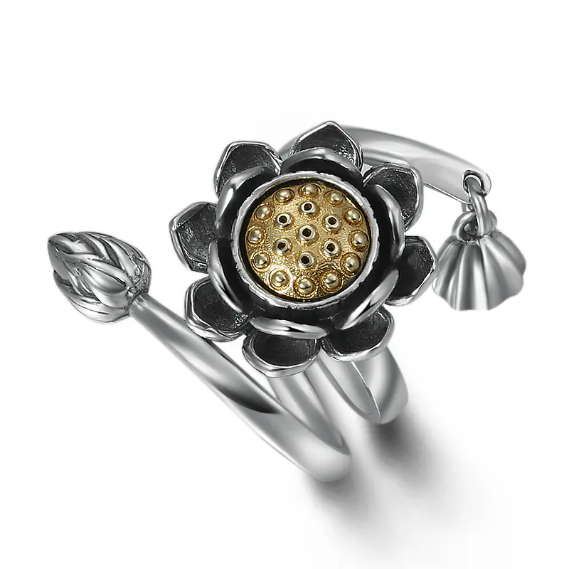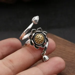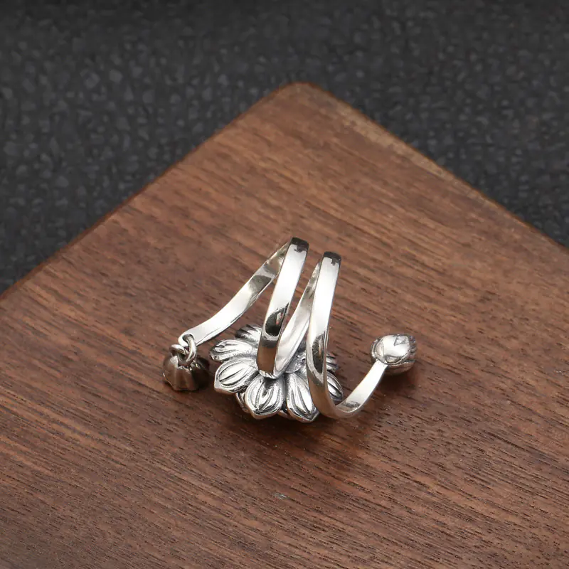 Silver Adjustable Ring Lotus 53