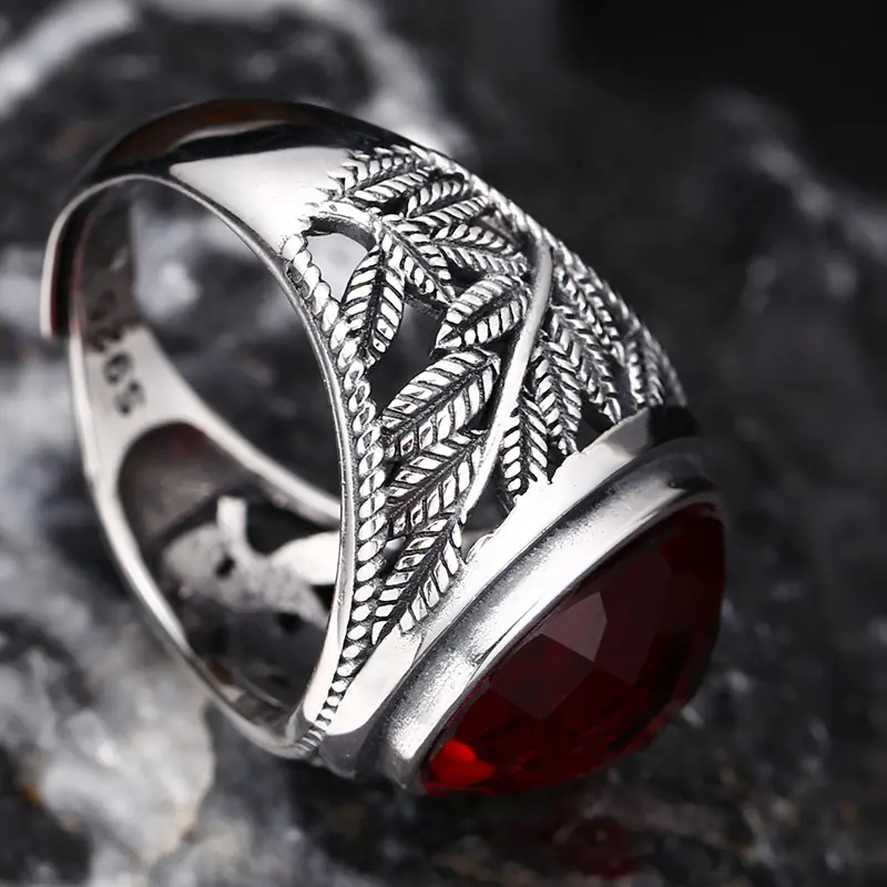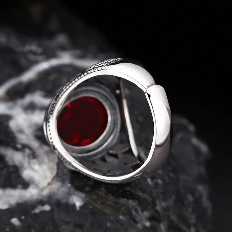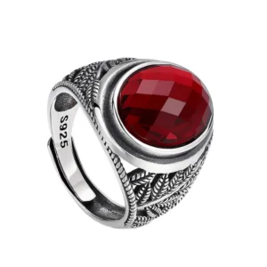Silver Adjustable Ring Oval Red Facet Stone 123