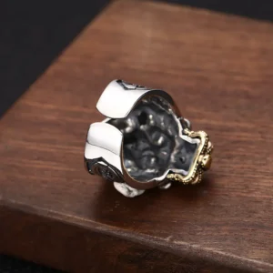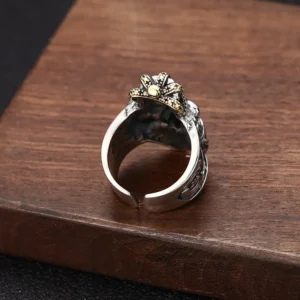 Silver Adjustable Ring The King Of Lion With Crown 51