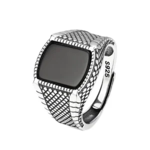Silver adjustable ring with Black agate 31