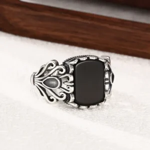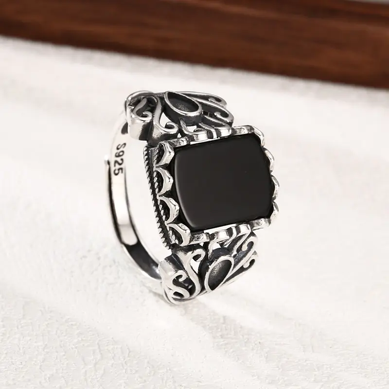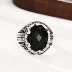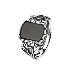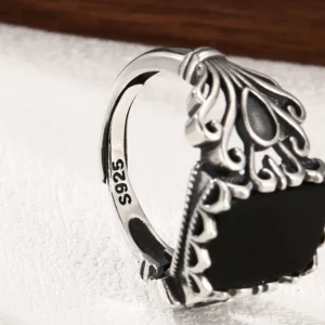Silver Adjustable Ring With Black Stone 39