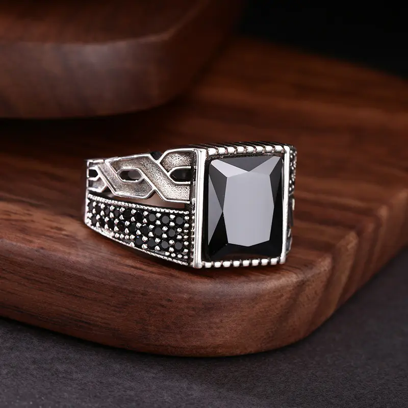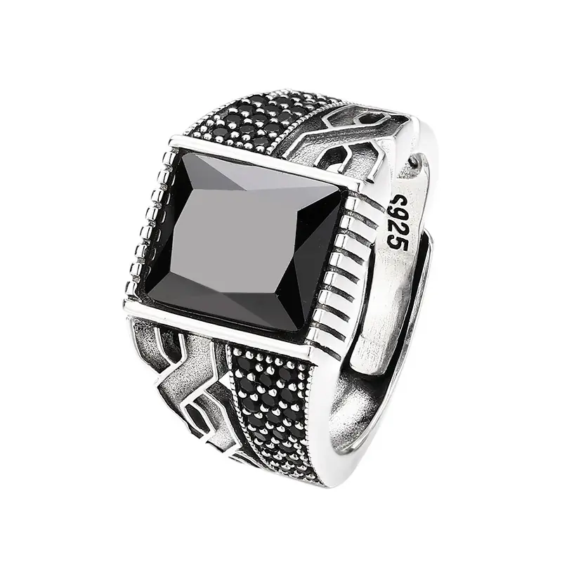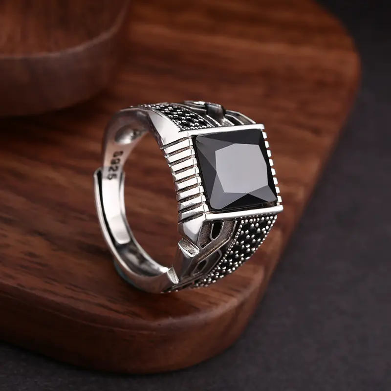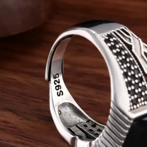 Silver Adjustable Ring With Black Stone 70