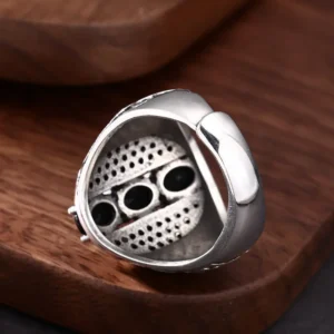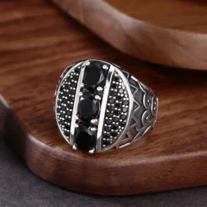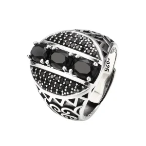 Silver Adjustable Ring With Black Stones 68
