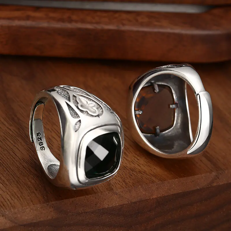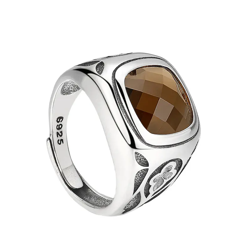 Silver Adjustable Ring With Square Stone 37