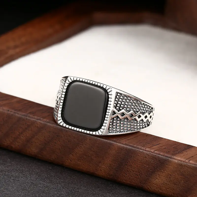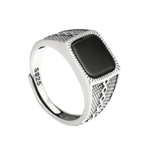 Silver Adjustable Rings Black Stone Vintage Style 146