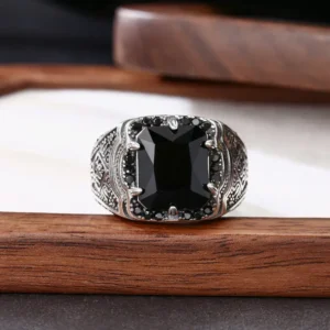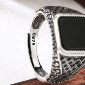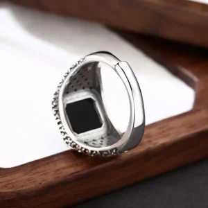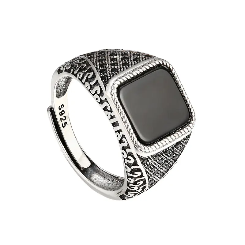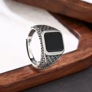 Silver Adjustable Rings Black Stones Vintage Style 147
