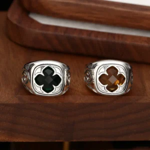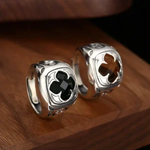 Silver Adjustable Rings Facet Square Stones Vintage Style 156