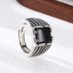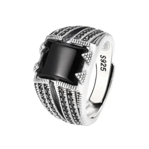 Silver Adjustable Textured Ring With Square Stone 65