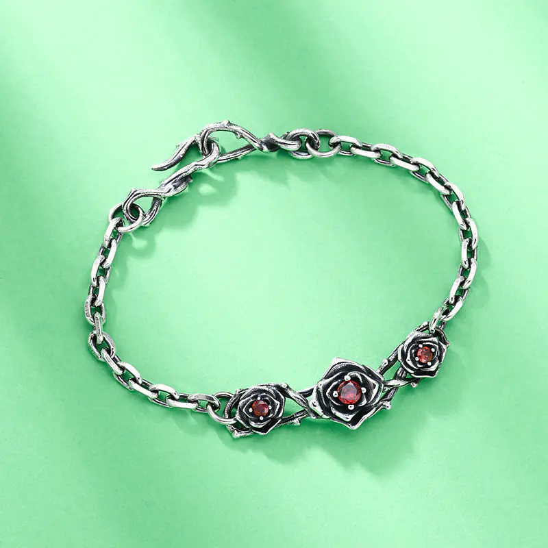 Silver Bracelets Rose Flowers Link Chains Bracelet Vintage Style 169