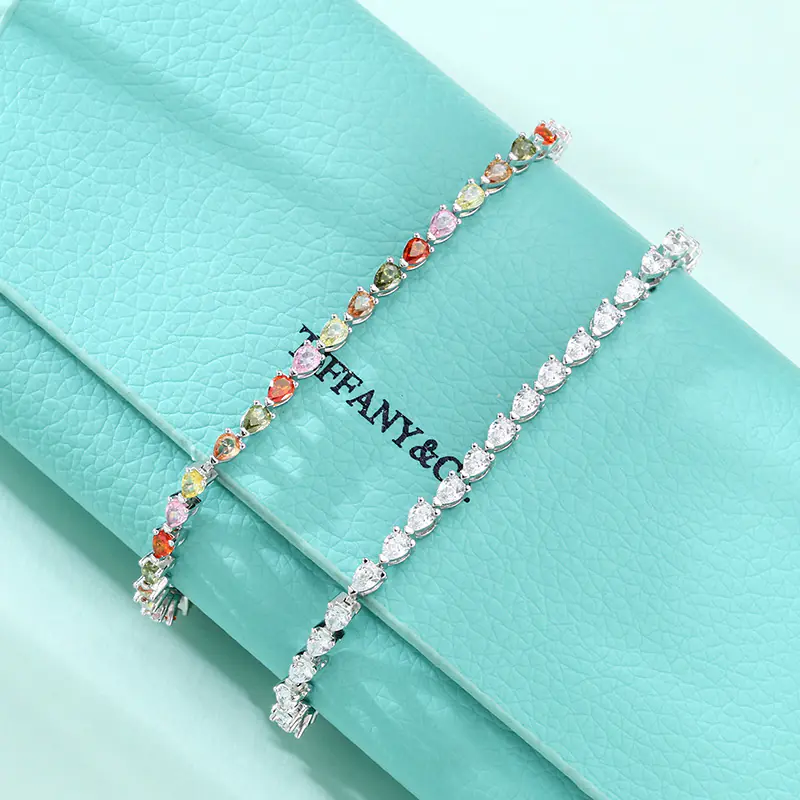Silver Bracelets Color Teardrop Stones Links For Women 209