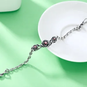 Silver Bracelets Rose Flowers Link Chains Bracelet Vintage Style 169