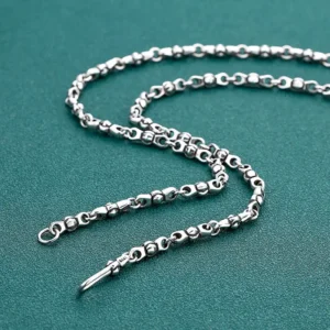 Silver Chain Necklace Dices Link Chain Vintage Style 269