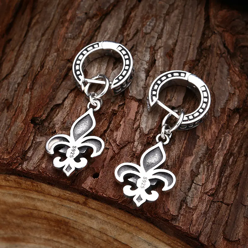 Silver Dangle Earrings Crown Spear Vintage Style 228