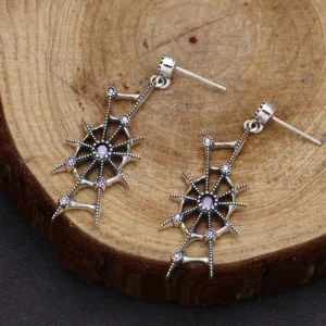Silver Dangle Earrings Spider Web Vintage Style 229