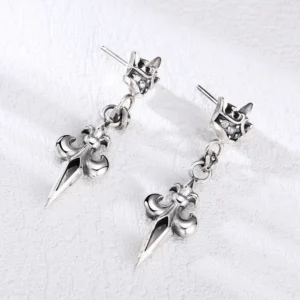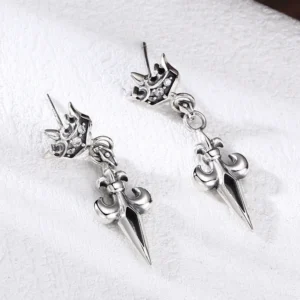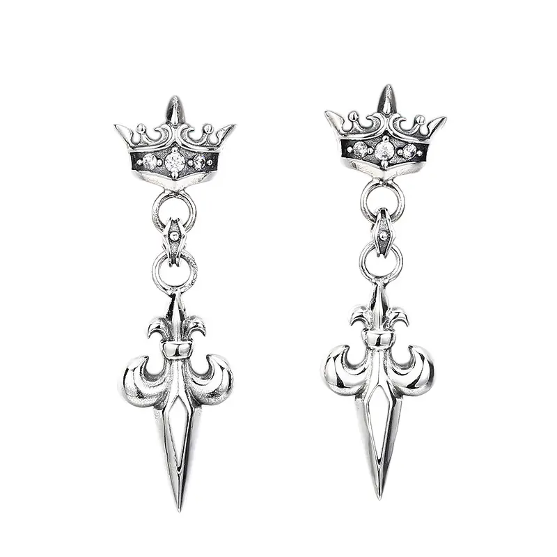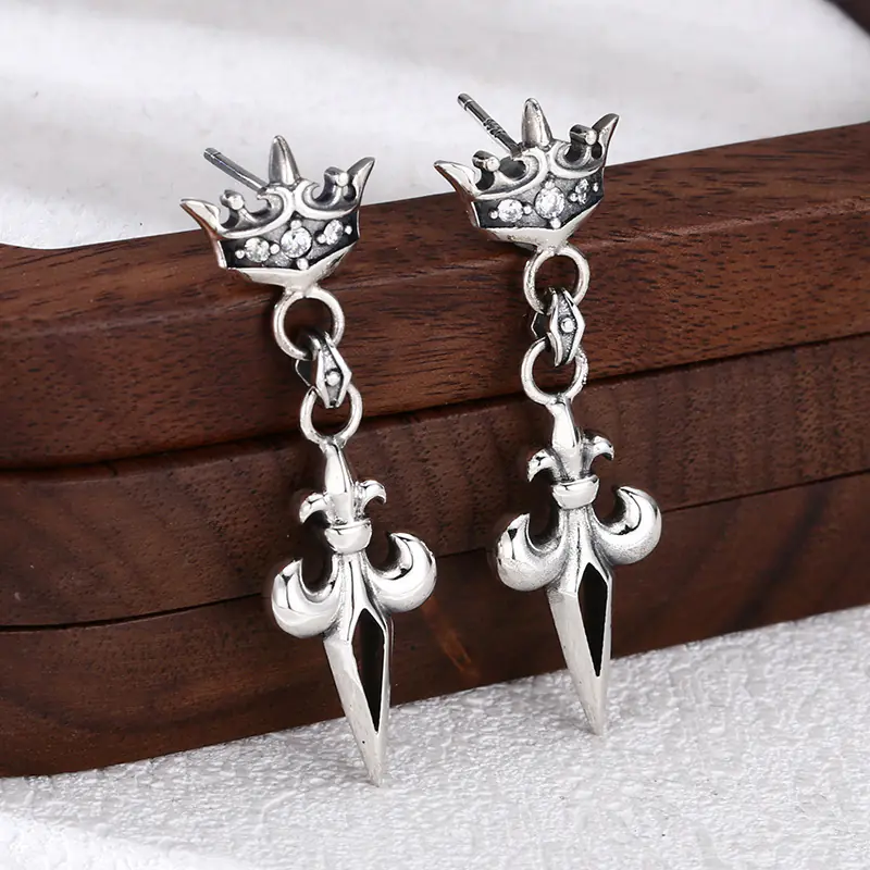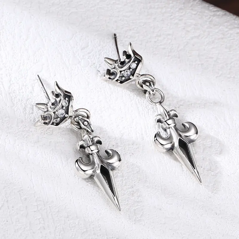 Silver Dangle Earrings Crown Spear Vintage Style 228