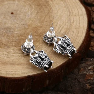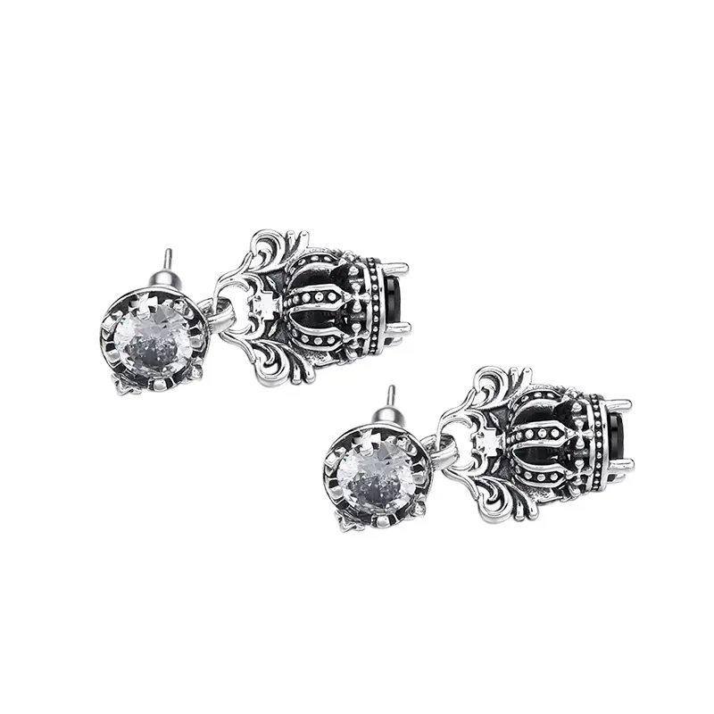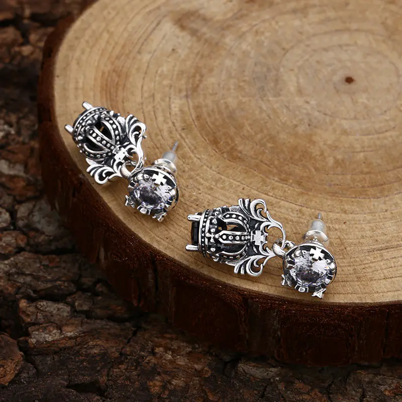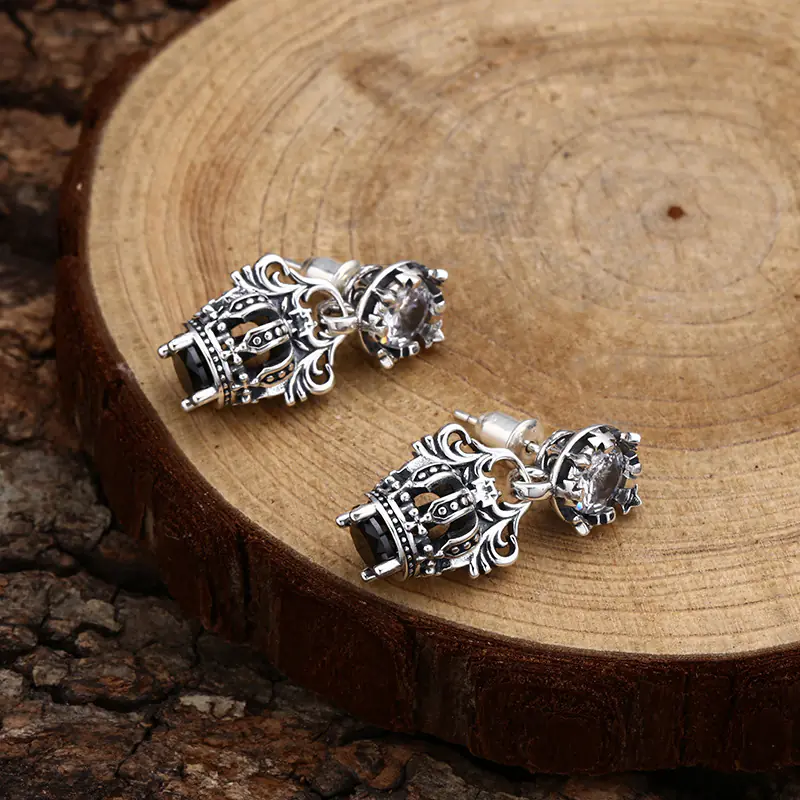 Silver Dangle Earrings Crown Vintage Style 233