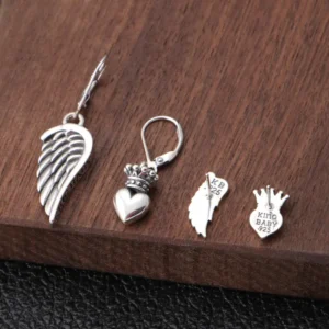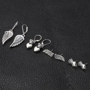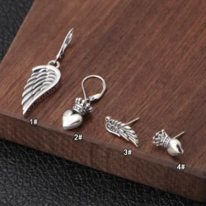 Silver Dangle Stud Earring Wings Heart Vintage Style 242