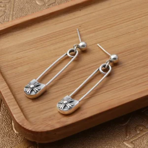 Silver Dangle Earrings Flower Bud Vintage Style 234