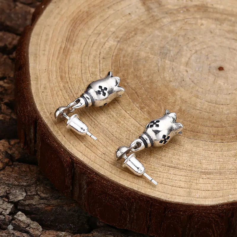 Silver Stud Earring Virgin Mary Vintage Style 240