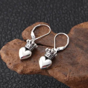 Silver Dangle Earrings Crown Spear Vintage Style 228