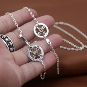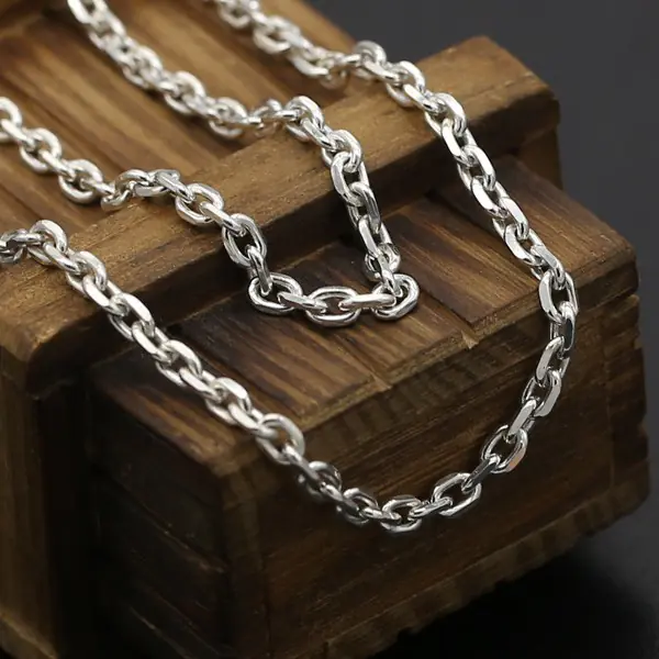 Silver Chain Necklace Bones Link Chain Vintage Style 268