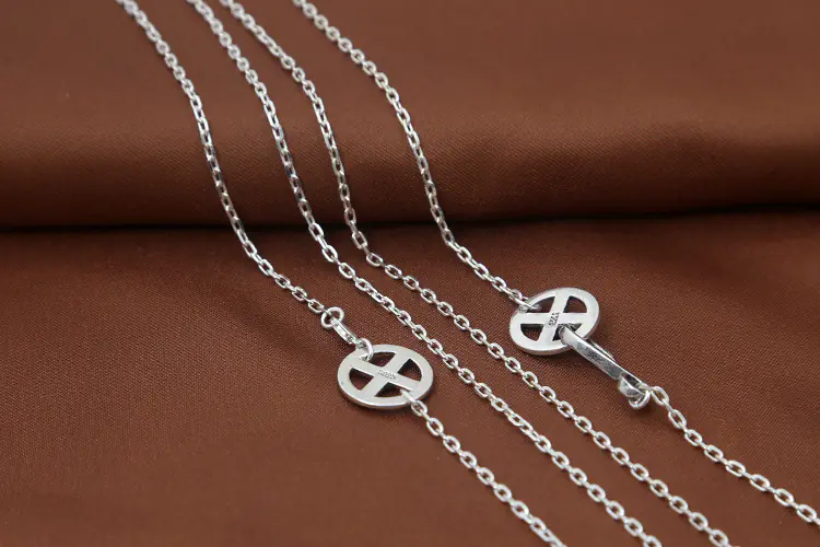 Silver Chain Necklace Bones Link Chain Vintage Style 268