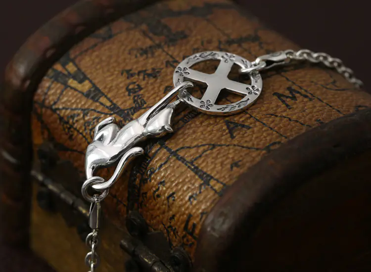 Silver Chain Necklace Skull Link Chain Vintage Style 267