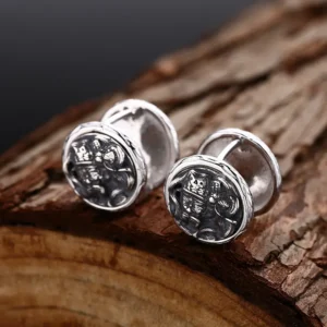 Silver Stud Earrings Red Black Stones Vintage Style 225