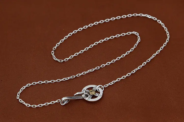 Silver Skull Pendant Necklace Bones Link Chain 260