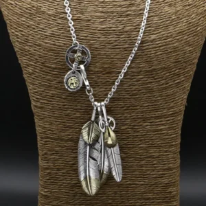 Silver Pendant Necklace Feather Shape Vintage Style 277