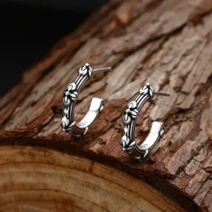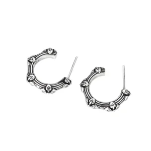 Silver Hoop Earrings Diamond Shape Textures Vintage Style 227