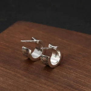 Silver Hoop Earrings Diamond Shape Textures Vintage Style 227