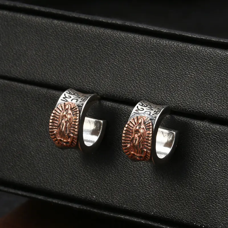 Silver Stud Earring Virgin Mary Vintage Style 240