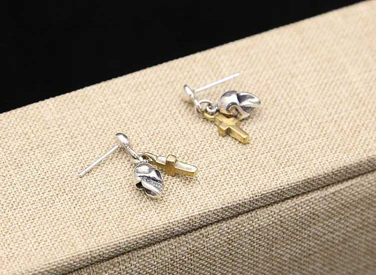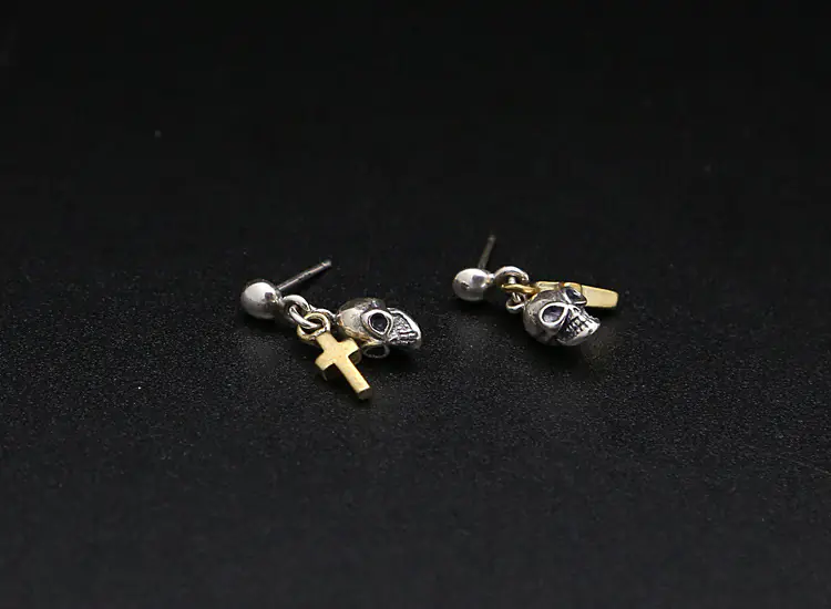 Silver Stud Earrings Cross and Skull Charms Vintage Style 218