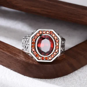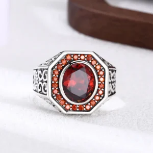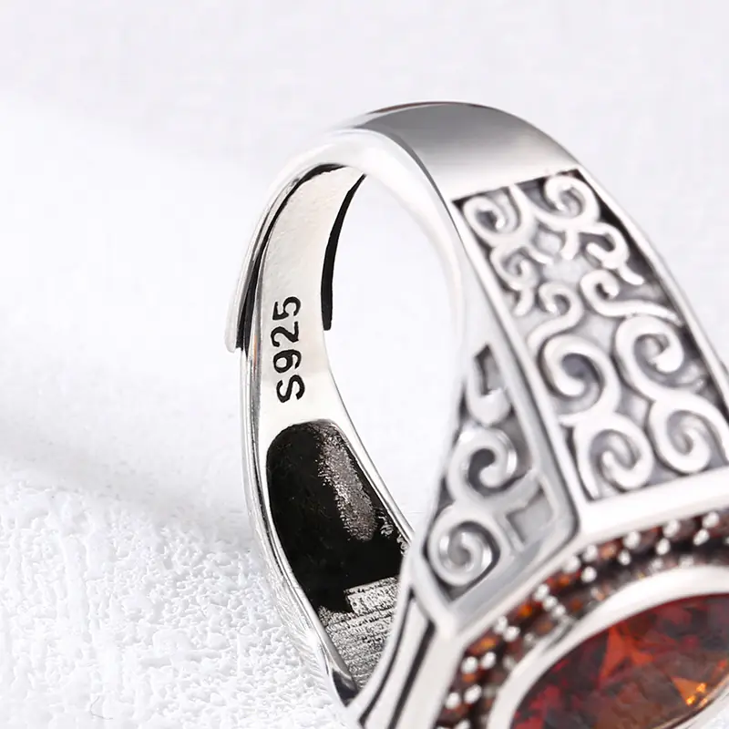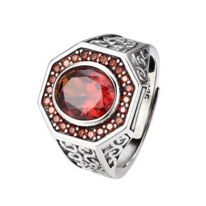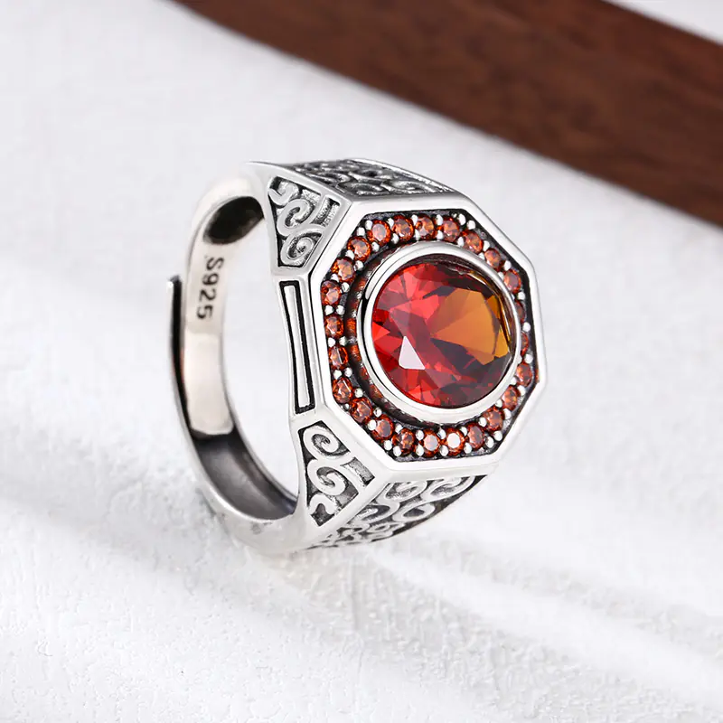Sterling Silver Adjustable Ring Red Stones Vintage Style 301