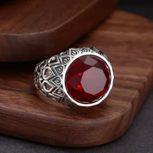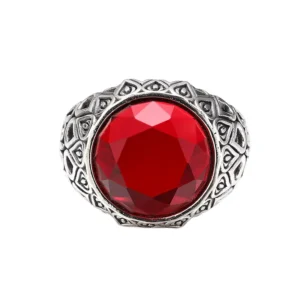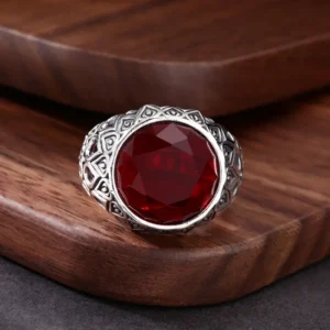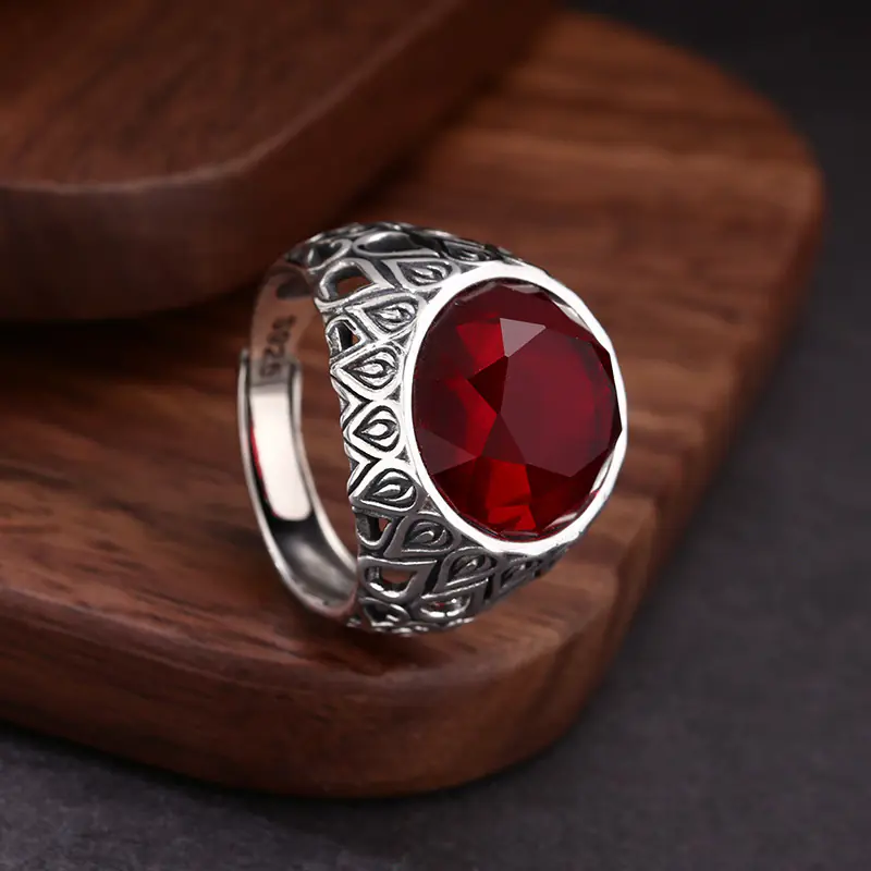 Sterling Silver Adjustable Rings Red Stone Vintage Style 315