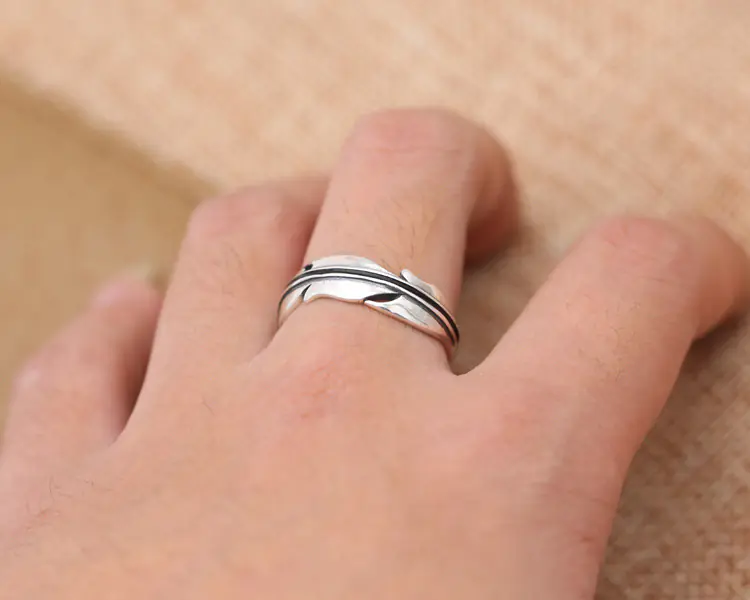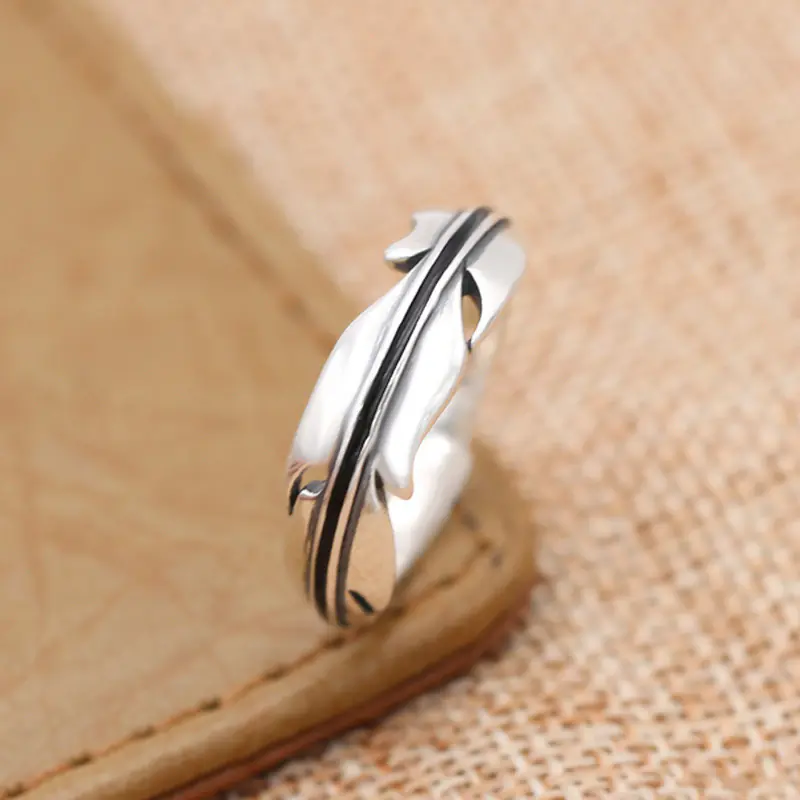 Silver Adjustable Ring Feather Vintage Style 104