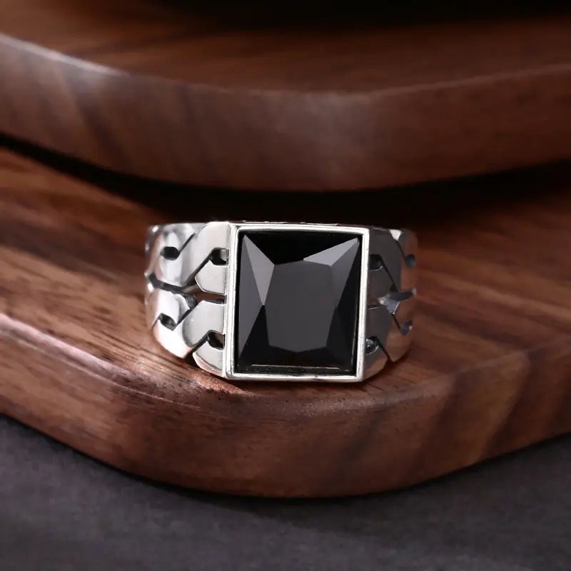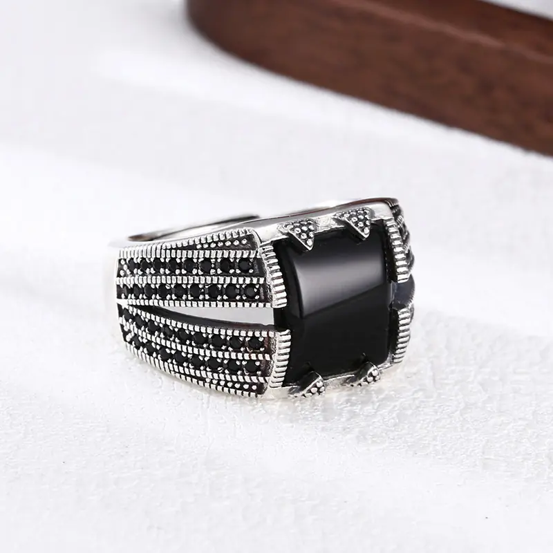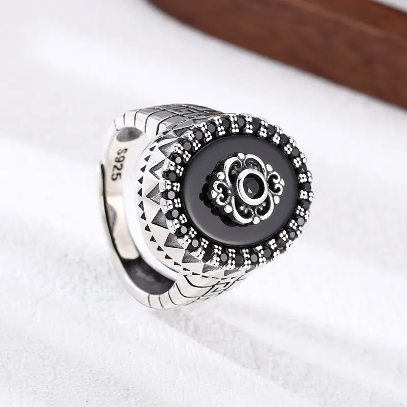 Silver Adjustable Ring With Black Stone 67