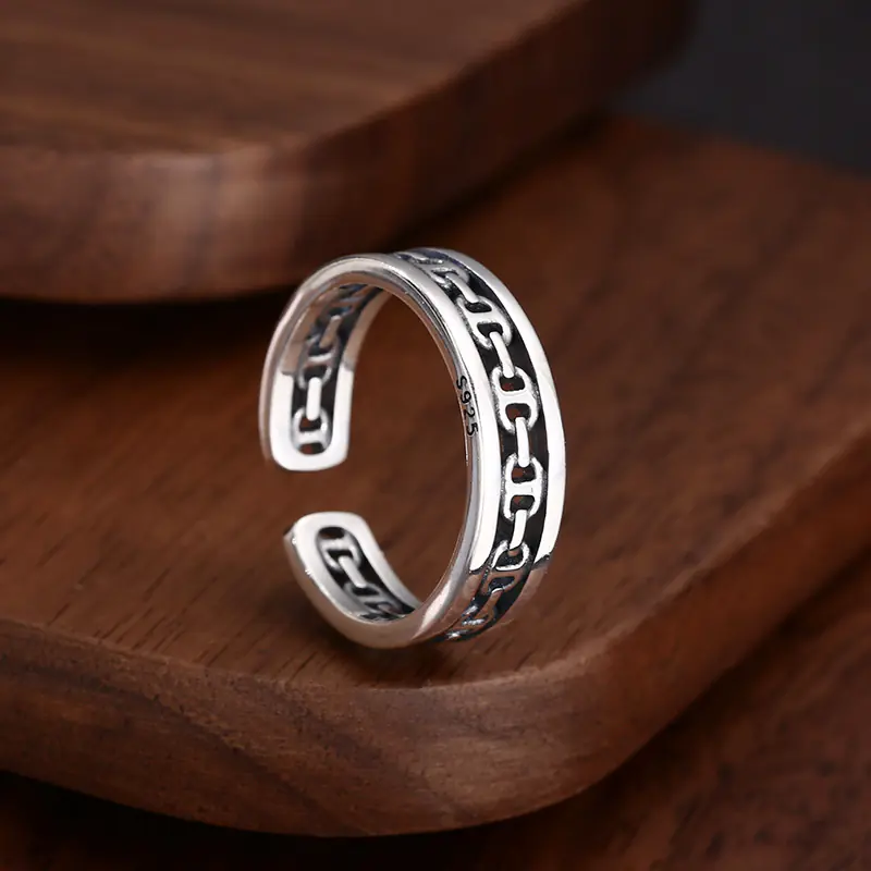 Silver Adjustable Textured Ring 66