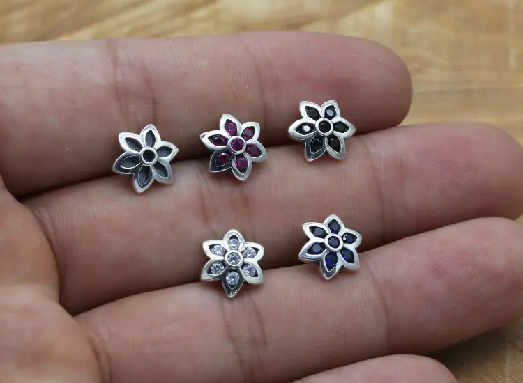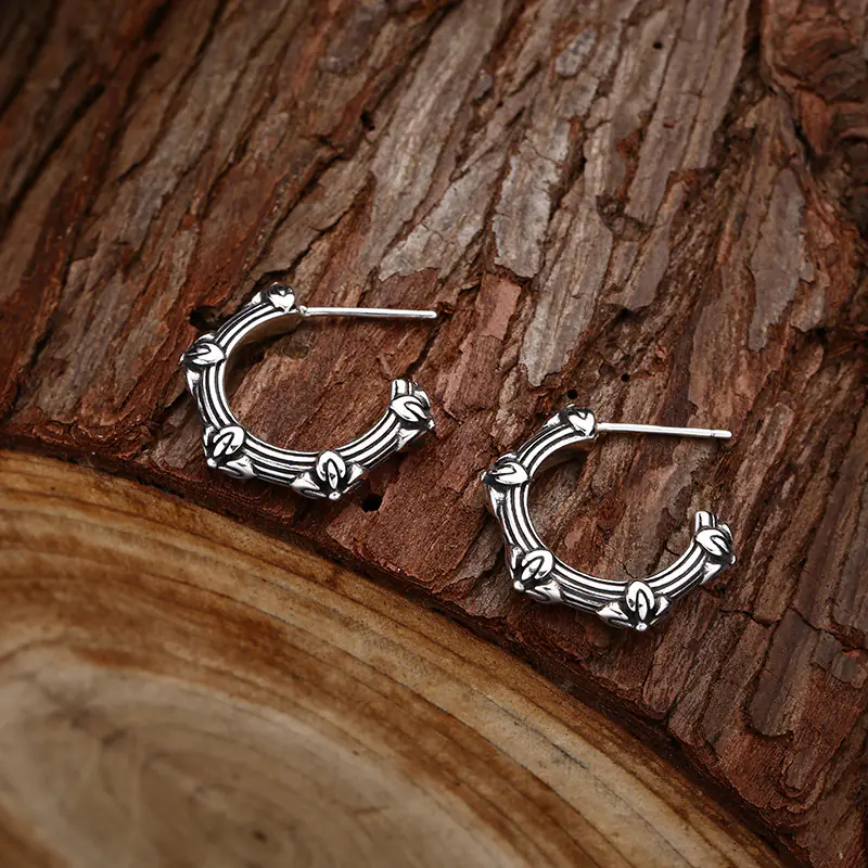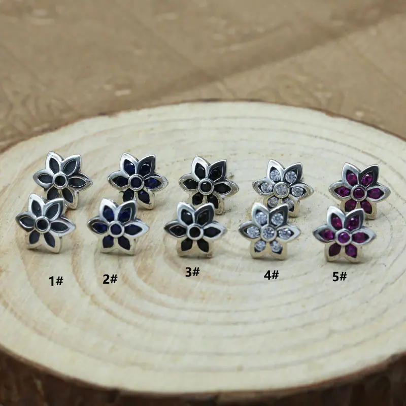 Silver Stud Earrings Hollowed Flower Vintage Style 239
