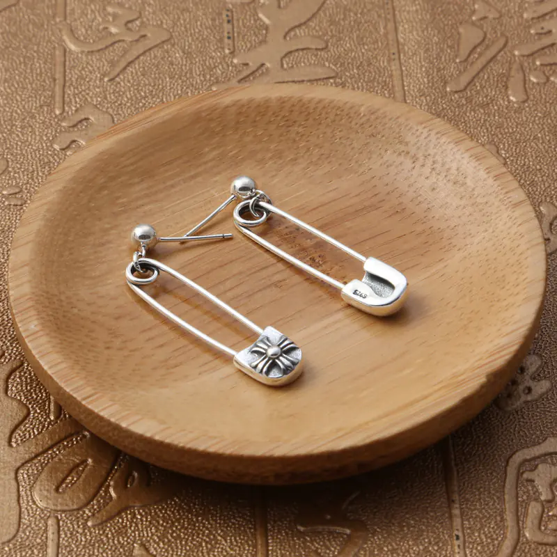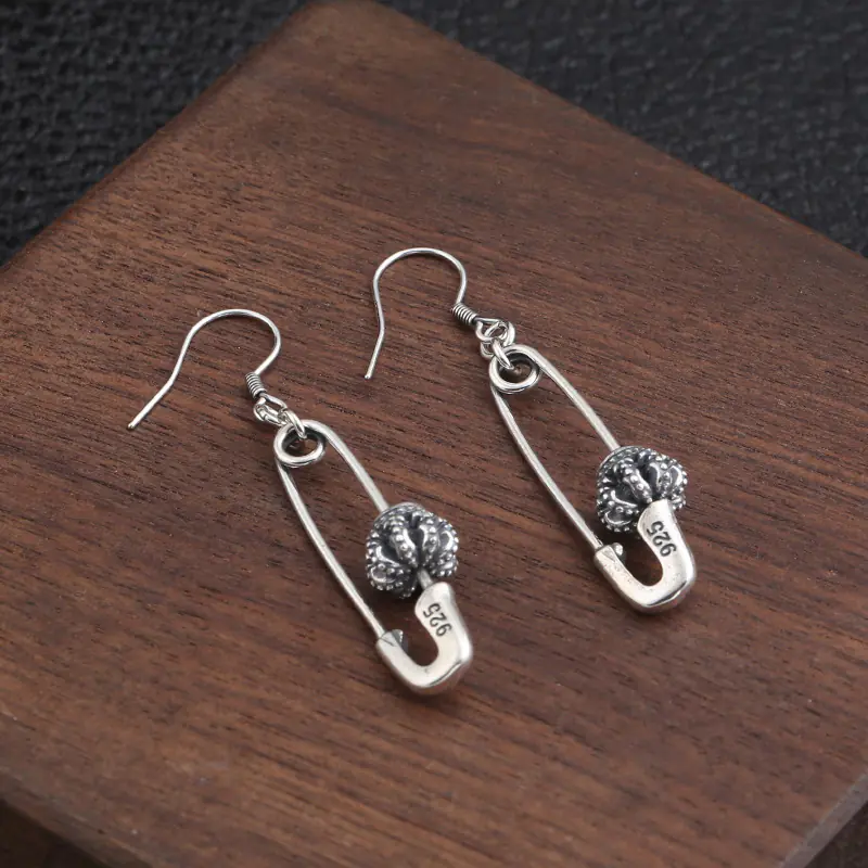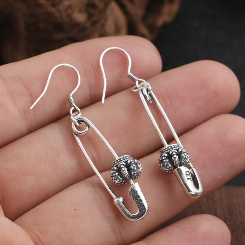 Silver Dangle Earrings Brooch Crown Vintage Style 241