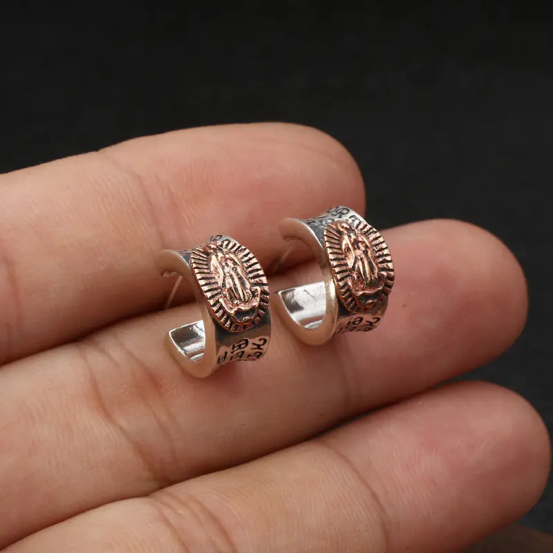 Silver Stud Earring Virgin Mary Vintage Style 240